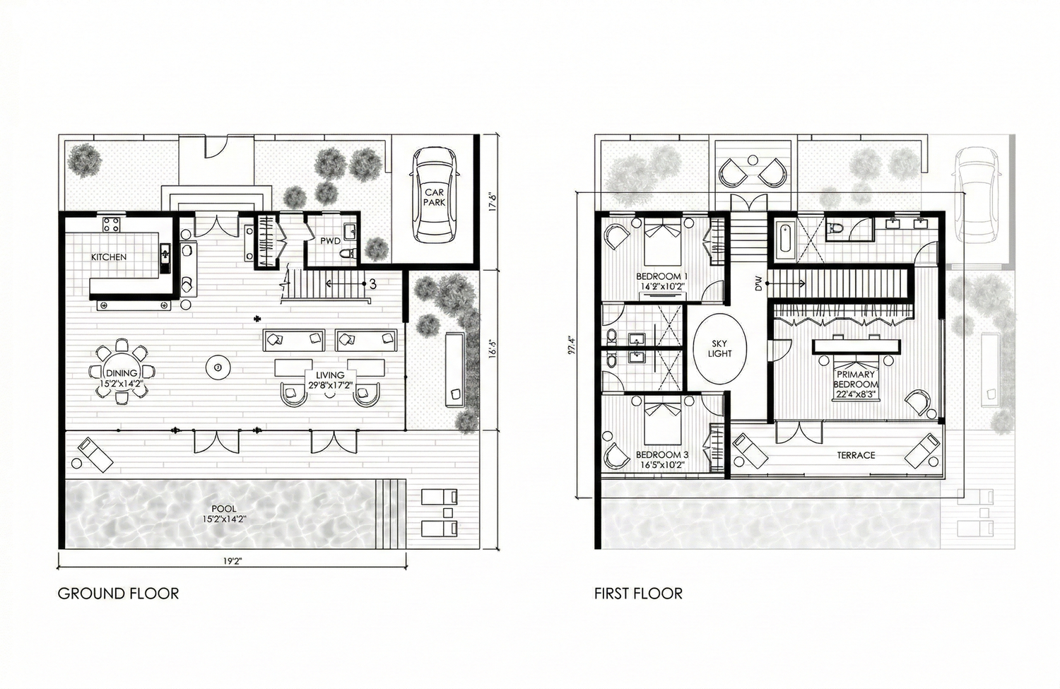 The master plan prioritizes orientation, privacy, and view. Buildings are positioned to capture long, unobstructed sightlines while maintaining a sense of seclusion from neighboring residences. The architecture mediates between openness and protection — framing horizon and sky while filtering light, climate, and exposure.