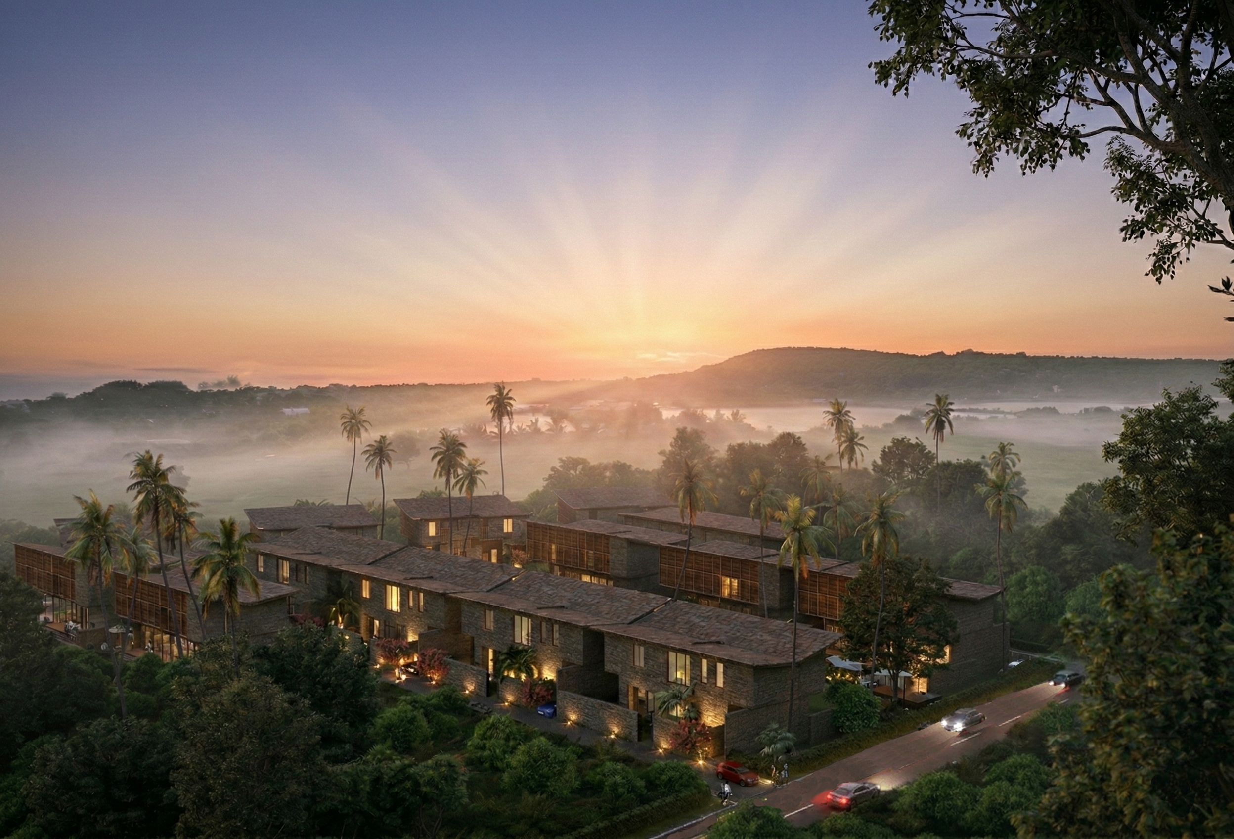 Sohonos is a residential enclave conceived as an immersive retreat within an expansive natural landscape of verdant hills and backwaters. Developed and designed by NAVA, the project brings together villas and apartments within a carefully composed environment where architecture and terrain operate as one continuous system.